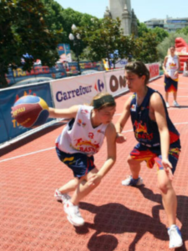 27, 28 y 29 JUNIO, MADRID La Plaza de España de Madrid fue el escenario de una fase final espectacular. 16 medias pistas de juego y nueve carpas formaron parte de un gran montaje, en el que no sólo se disputaron las grandes finales de la temporada sino que hubo muchas más actividades de entretenimiento: globoflexia, espectáculos de payasos, cheerleaders, actuaciones de los Looney Tunes de la Warner Bros. y mimos. El resultado fue un fin de semana inolvidable para todos, participantes y acompañantes, quienes además tuvieron la oportunidad de estar cerca de los numerosos jugadores y ex jugadores que se acercaron a la plaza, incluido uno de los cracks de la Selección, Jorge Garbajosa. Y hubo también tiempo para un partidillo con Fernando Romay de protagonista, así como una exhibición de streetball con los mejores especialistas europeos, entre ellos el español Lennon The Lawyer. Participación, diversión y competitividad, sobre estas tres bases ha empezado a edificar la FEB este revolucionario programa, enmarcado en el Programa Escolar de Baloncesto. PARTICIPACIÓN: es una forma ideal de acercar al baloncesto a todos los niños y niñas, en especial a aquellos que no tienen la oportunidad o las cualidades para formar parte de un equipo federado. DIVERSIÓN: es el gancho esencial para conseguir que quienes se hayan acercado al TRIBASKET permanezcan en el baloncesto y sean a su vez un foco de captación de nuevos jugadores. COMPETITIVIDAD: se trata de participar y de divertirse, sí, pero también de competir. Porque el baloncesto es también competitividad. El TRIBASKET va a ser sin duda uno de los pilares del ambicioso objetivo que se ha marcado la FEB para 2012: llegar al millón de licencias en toda España, cifra que no sólo triplicaría aproximadamente las actuales sino que convertiría al baloncesto en el deporte con más licencias de toda España, superando incluso al fútbol.