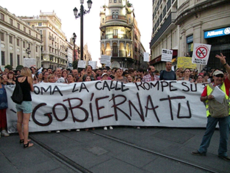 Miles de personas de diversos rangos de edad, pero principalmente, gente joven, secundaron el sábado 15 de Octubre, en Sevilla, la convocatoria de manifestación promovida en 710 ciudades de 70 países de todo el mundo , unido por un cambio global; el movimiento de indignado que dio origen al 15 m, que fue secundada la manifestación, con el lema toma la calle, rompe tu bolsa, gobierna tu vida con una protesta pacifica y festiva en la que no solo se grito contra la crisis de los banqueros y los privilegios de unos pocos, sino también contra los recortes en sanidad y educación, e incluso contra el escudo antimisiles de Rota (Cádiz).