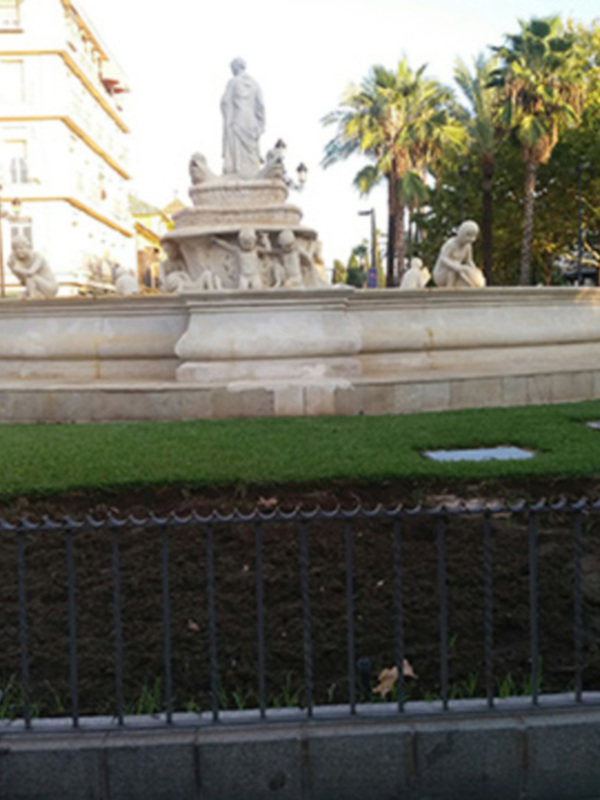 Sevilla es una ciudad con numerosas y bellas fuentes. Llama la atención que la fuente de Puerta Jerez está sin funcionar reiteradamente.