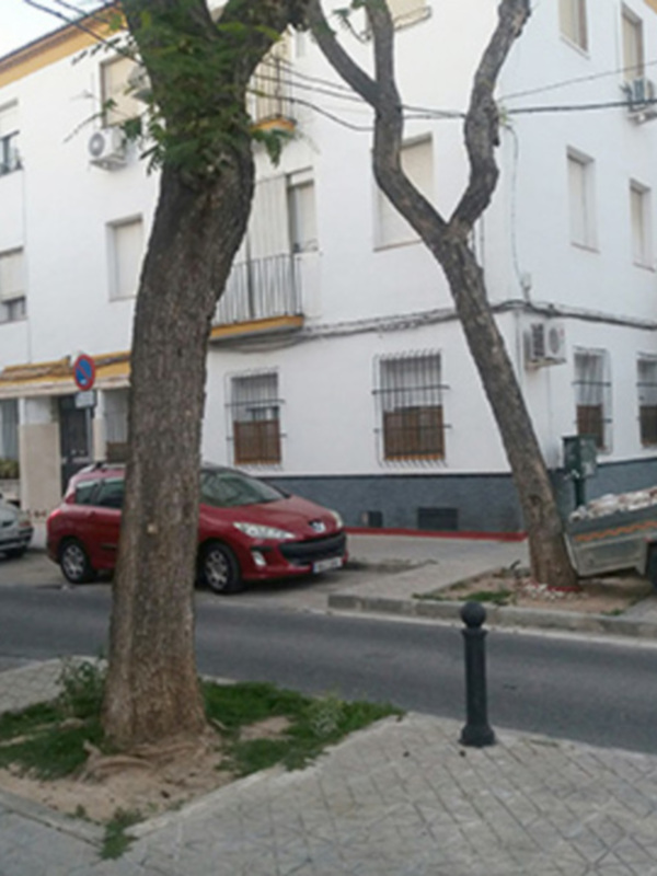 Los alcorques del arbolado son escenario de acciones de todo tipo. Los excrementos de perros son habituales. Utilizar el árbol como barra de seguridad para atar la bici, la moto o el carro.