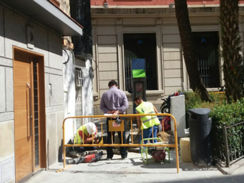 El cierre y la apertura de nuevos negocios y comercios, obliga a realizar acometidas de agua y luz principalmente. Además de las obras que realizan los operarios municipales en calles y plazas hay que añadir este tipo de obras de adecuación y de apertura de negocios. La foto corresponde a calle Francisco Bruna en un lateral de CAJASOL.