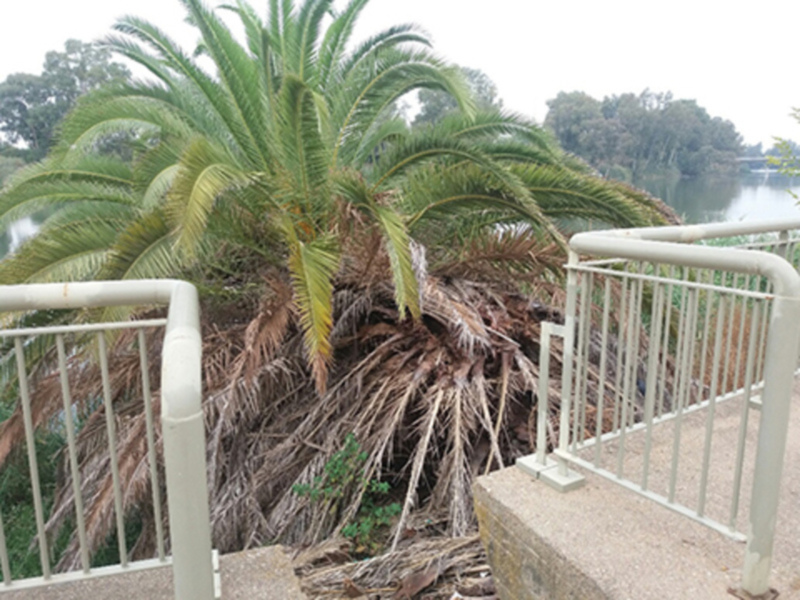 El mal estado de la margen que linda con el Parque de San Jerónimo hace que en las orillas se acumule suciedad y plantas que han nacido espontáneamente. Existe algún ejemplar de Phoenix canariensis muerto y afectado por Picudo que al no eliminarse se convierte en un foco de difusión de esta plaga que ha acabado con la mayoría de las palmeras canarias de la ciudad. Urge eliminar este foco de infección.