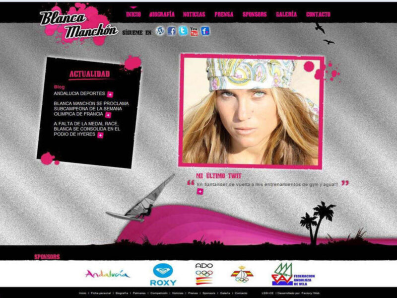 La regatista sevillana Blanca Manchón (Andalucía/Roxy) vuelve a ser noticia. Incluso fuera del agua. Y es que aprovechando un receso en la Copa del Mundo, en la que defiende título en la clase RS:X; la disciplina olímpica del windsurf, y cuya próxima cita está prevista a partir del día 26 de mayo en Holanda, la vigente campeona de la competición renueva su imagen en la red de redes. Para ello, de la mano de la empresa Factory Web, la windsurfista del Club Náutico Sevilla estrena estos días portal en internet, actualizando sus contenidos a las nuevas tendencias.