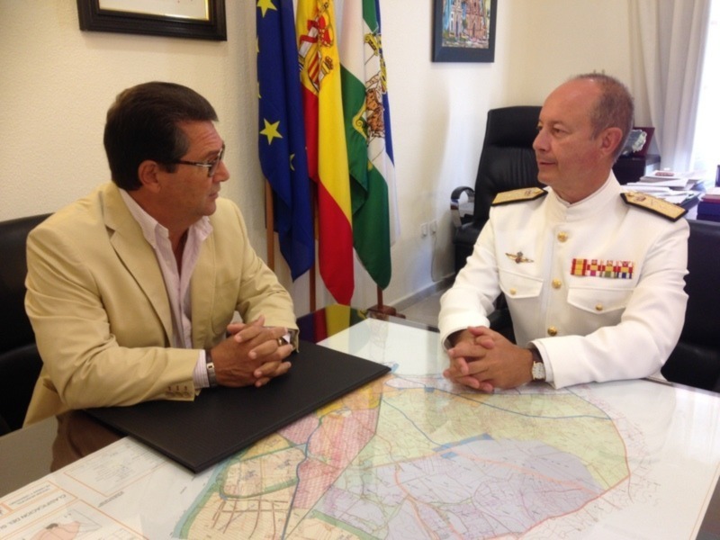 Chipiona, a 12 de agosto de 2014.- El Alcalde de Chipiona, Antonio Peña Izquierdo, ha mantenido en la mañana de hoy un encuentro con el Almirante Jefe de la Base Naval de Rota, Santiago Ramón González Gómez, una visita que ha tenido por objeto estrechar lazos de colaboración entre ambas instituciones.