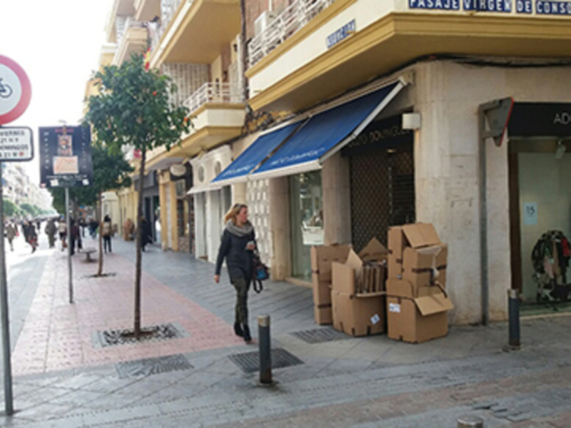 Los martes y viernes en horario de 14:00 a 17;00 horas los comercios sacan a la puerta del establecimiento los embalajes y cartones para ser retirados puntualmente por el servicio de recogida de residuos. En las calles de Sevilla hay más de 2.000 contendores azules eespecíficos para recogida de papel y cartón.