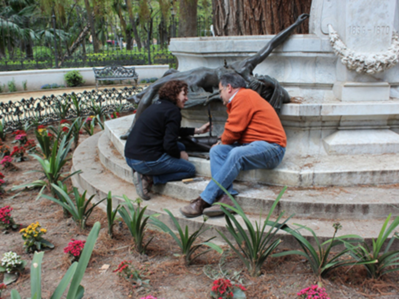 Esta tercera fase del proyecto ha contado con un presupuesto de 32.180 euros, que se agregan a la profunda restauración del monumento acometida en 2016 –incluyó su desmontaje completo y posterior montaje adaptándose, además, al crecimiento de las raíces del árbol donde se asienta– con 60.354 euros de presupuesto global y a la intervención sobre la jardinería y el pavimento de albero anexos, que contó con otra partida de 9.000 euros.