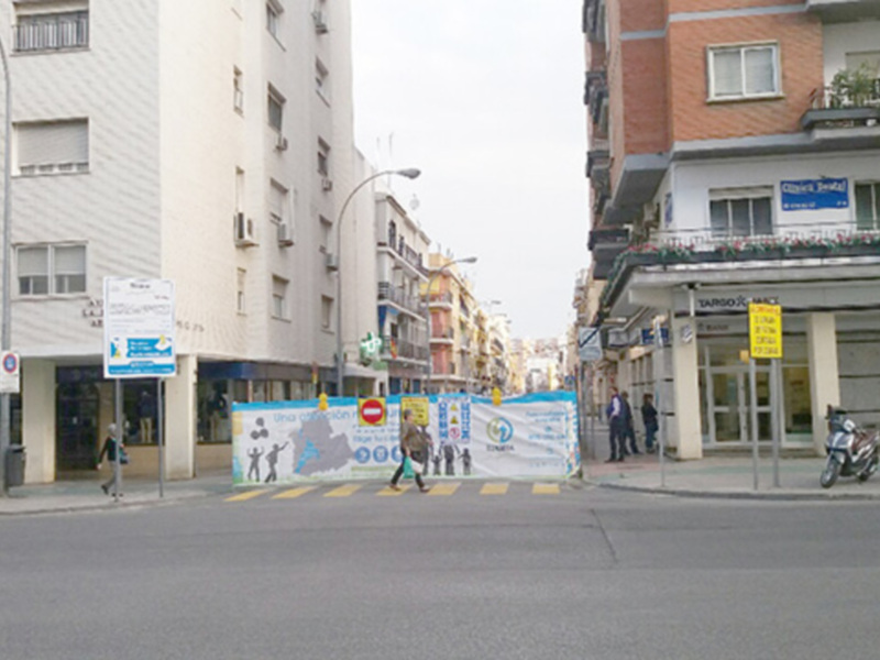 Calle Virgen de Fátima cortada al trafico por obras de Emasesa