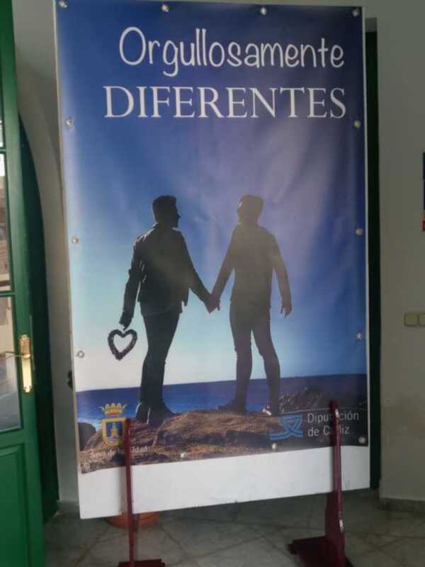 El pasado jueves 17 de mayo se conmemoraba en la localidad la jornada contra la homofobia y desde entonces los carteles realizados para sensibilizar a la población han pasado por diferentes puntos estratégicos de la localidad, como en los dos institutos de educación secundaria, Salmedina y Caepionis, y la plaza de Andalucía.