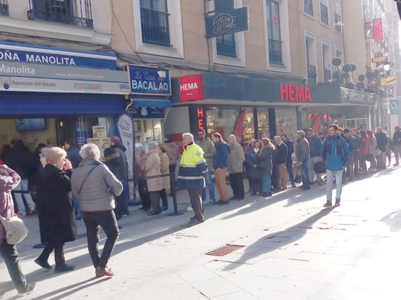 La lotería de Navidad un fenómeno de gran repercusión social; como todos los años, a pesar de internet, miles de personas acuden a la lotería de doña Manolita en la calle del Carmen de Madrid, para comprar ilusión.