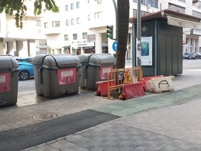 Los contratistas de obras siguen depositando materiales en los alcorques. No tienen conciencia de que eso está mal hecho. Igualmente es frecuente ver anuncios en troncos de árboles y pegatinas en papeleras anunciando servicios profesionales. Los servicios municipales no deben permitir estas actuaciones. Forma parte de su trabajo y por tanto de su responsabilidad.