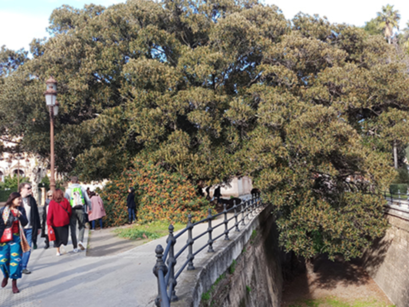 Una ciudad debe tener muy presente el mantenimiento de estos ejemplares que forman parte de la historia de la ciudad. Sevilla tiene un importante patrimonio de árboles ejemplares que deben en primer lugar tener un mantenimiento adecuado. En el caso del ejemplar que aparece en la foto se ve la gran descompensación que puede provocar la fractura de ramas por el desequilibrio de la copa. Esto es consecuencia del abandono de muchos años. Es necesario una puesta en valor de los ejemplares de la ciudad, informando sobre los ejemplares mediante una señalización adecuada, en varios idiomas que permita al visitante y a los escolares conocer algo más sobre estos testigos vivos de la historia de la ciudad.