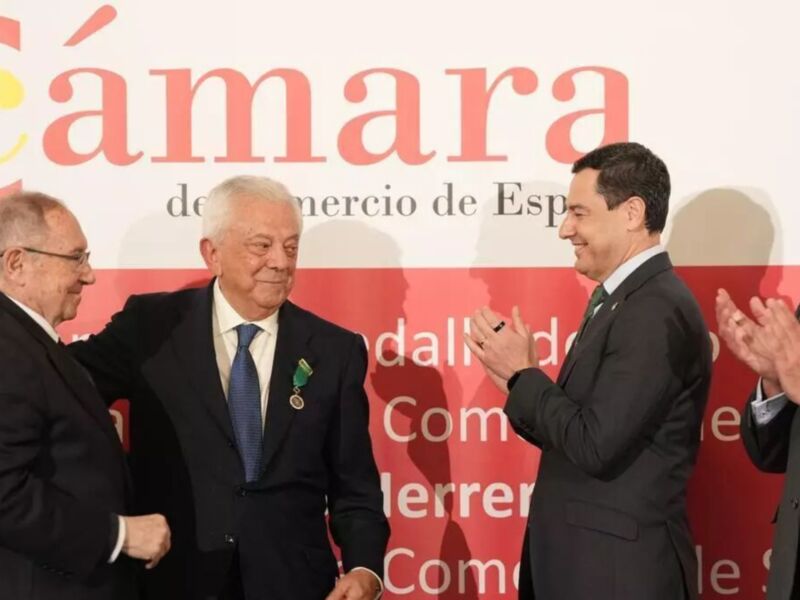 Este galardón supone un reconocimiento al trabajo y compromiso del presidente de la Cámara de Comercio de Sevilla con las empresas y la sociedad, así como a su aportación al sistema cameral español