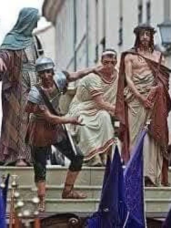 Hace unos años estuve en Zamora y me acerque a ver el museo de la semana santa ,alli todos los pasos estan en un recinto para que puedan ser vistos por los visitantes y nada mas acercarme al de la sentencia que vemos abajo en diferentes planos y me resultó familiar , le pregunté al guia y por mi acento sevillano me dijo con sorna "estas figuras y su disposición inspiraron a los pasos de los Pilatos de Sevilla"....