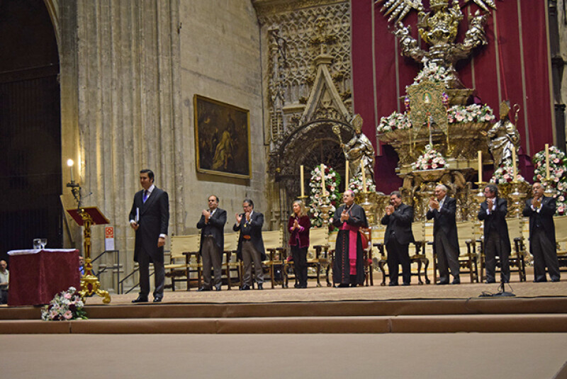 El consejo General de Hermandades y Cofradía de Sevilla de Sevilla, celebró el pregón de las glorias en la Santa Metropolitana Iglesia Catedral hispalense pronunciado, por el joven cofrade Álvaro Carmona López y presidido por el Simpecado de la Hermandad de Nuestra Sra. del Rocío de Sevilla-El Salvador. El acto fue presentado por Gregorio Serrano López, Teniente Alcalde de Sevilla y Delegado de Fiestas Mayores del Ayuntamiento de Sevilla. El pregonero Álvaro Carmona, pronunció un texto que estuvo marcado por un alto contenido poético, a base de romance en cada capítulo encadenado por una introducción que tuvo presente la figura del historiador Juan Martínez Alcalde fallecido recientemente, que le dedico un capitulo al comienzo del pregón que fue de los más aplaudidos. Tras este capítulo comenzó un recorrido por devociones de gloria, como la Reina de Todos los Santos o las Hermandades filiales como Virgen de Aracelis de San Andrés, de la que es hermano, la de la Cabeza de San Juan de la Palma, Guadalupe de San Buenaventura o la Virgen de la Sierra de San Roque. Carmona termino su pregón haciendo un recorrido por las imágenes sevillana en la advocación del Rosario. La proclamación estuvo armonizada por la Banda Sinfónica Municipal de Sevilla que interpretó las marchas ?Bajo tu Amparo? del compositor alicantino Rubén Jordán Flores y la marcha ?Gloria de Sevilla? del sevillano Manuel Marvizón Carvallo, además de los Himnos de Andalucía y España.