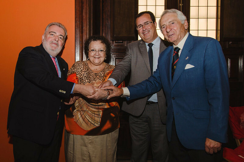 En la foto, el momento de la entrega en presencia del delegado de Seguridad, Movilidad y Fiestas Mayores, Juan Carlos Cabrera, y del vicepresidente del RCEA, Luis Torres de la Rubia.