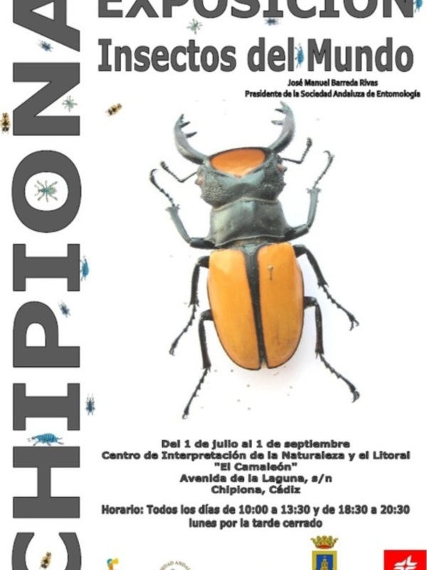 El Centro de interpretación de la naturaleza y el litoral El Camaleón acoge una completísima exposición de insectos del mundo de José Manuel Barreda Rivas, presidente de la Sociedad andaluza de entomología.