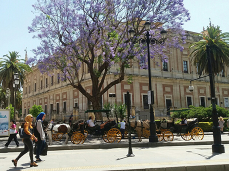 A diferencia de años anteriores en las que árboles de Sevilla florecen de manera escalonada, este año después de la floración de las Jacarandas se ha producido una explosión de colores debido a las especiales condiciones climáticas que estamos teniendo. Hoy de maner única podemeos ver florecidas las Jacarandas, Grevilleas, Catalpas, Lagerstroemias, Albizias, Tipunas, Leucaenas, etc.