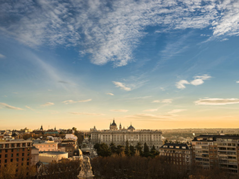Imagínate…un atardecer con el Palacio Real de fondo desde lo alto de un edificio, tu canción favorita sonando desde la habitación, una mantita cool y tu pareja al lado ¿Alguien da más?