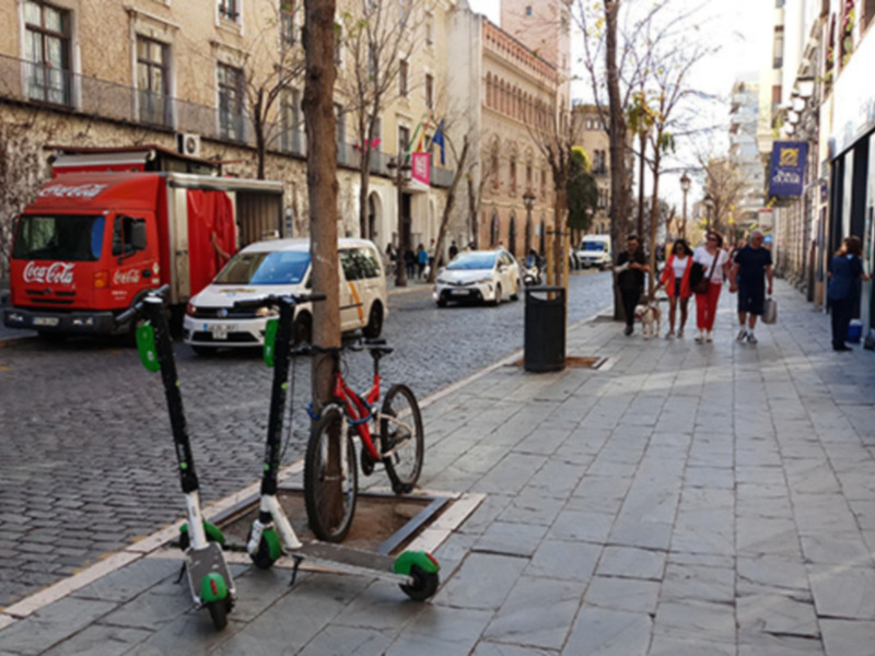 Patinetes, bicicletas y alcorques.