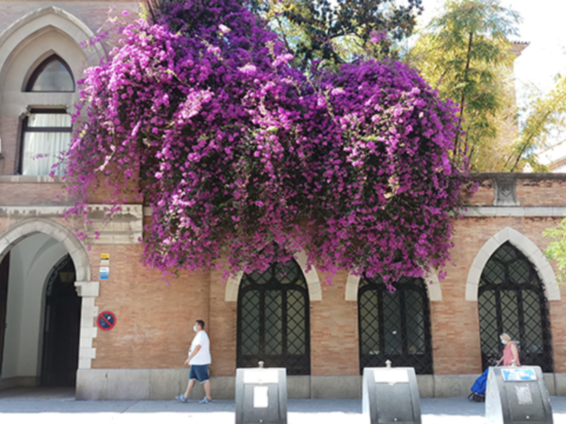 Es una planta habitual en el paisaje mediterráneo. Es una planta de origen americano y hay una gran variedad de colores. Ideal para cubrir muros y para utilizar en pérgolas. Se puede utilizar como seto informal y también para cubrir taludes. Muy resistente al calor y la sequía. Planta de hoja caduca en climas templados y perenne en climas subtropicales y tropicales. Comercialmente hay más de 120 variedades de distintos colores que se puede comprar. Las más utilizadas la B. glabra (rosa) y la B. spectabilis (roja).