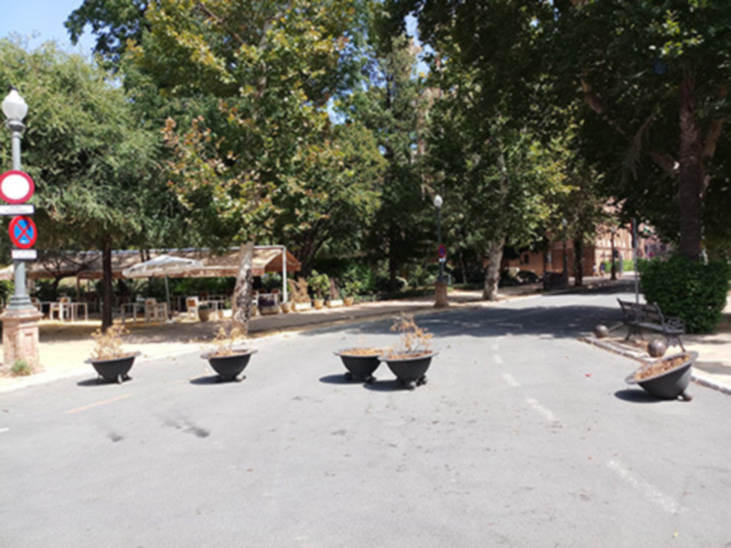 Los maceteros del Parque de María Luisa, necesitan mantenimiento.