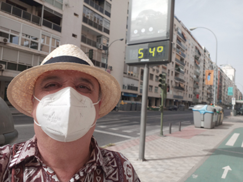 Hoy en Sevilla a las 6:20 de la tarde, temperatura de 54º C y un 18% de humedad relativa.
