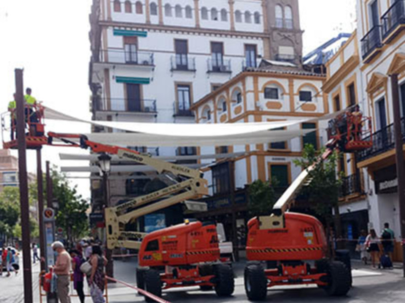 Se colocan toldos en el centro de Sevilla.