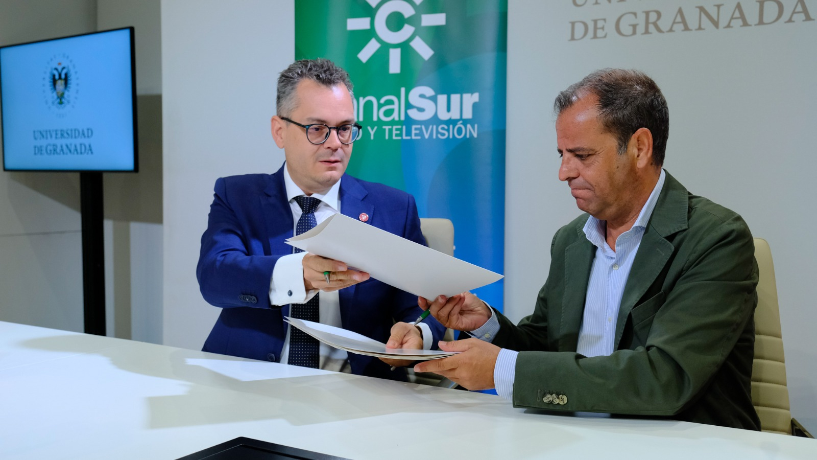 En la mañana de este lunes 8 de julio ha quedado formalizado un Convenio de Colaboración entre Radio y Televisión de Andalucía y la Universidad de Granada (UGR) la realización de prácticas académicas curriculares del alumnado universitario en los medios y sedes de Canal Sur Radio y Televisión.