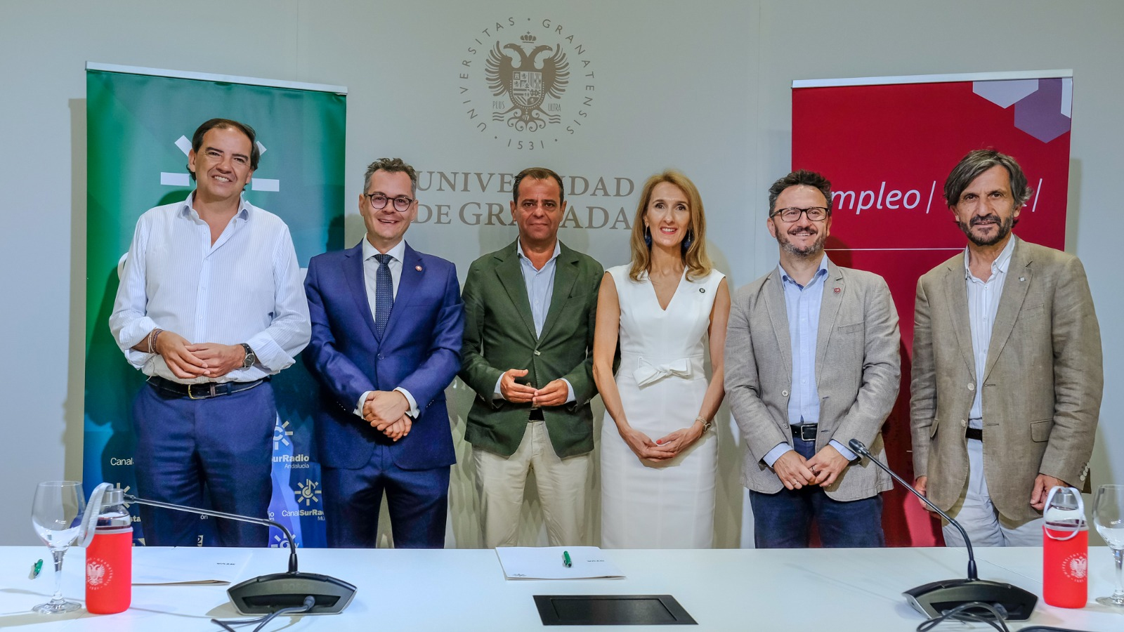 Al acto, han asistido, además, Juan Vargas, director de Innovación, Negocio y Comunicación de RTVA; Aurelio Cappa, director territorial de RTVA en Granada; y María del Mar Ortiz Camacho, directora de Empleo y Prácticas de la Universidad granadina.