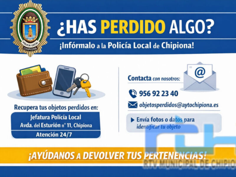 La Policía Local de Chipiona ha puesto en marcha una iniciativa a través de Facebook para facilitar la recuperación de objetos perdidos y agilizar su devolución a sus propietarios. Bajo el nombre ‘Objetos Perdidos Chipiona’, la página funciona como un canal informativo y de contacto directo entre la ciudadanía y el cuerpo policial.