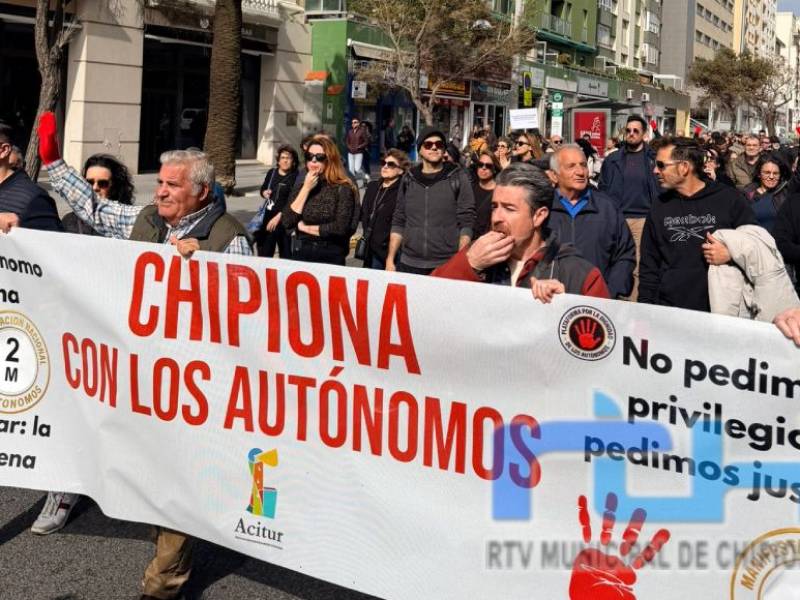 Acitur, con su presidente Sebastián Tirado a la cabeza, y Centro Comercial Abierto han llevado el lema “Chipiona con los autónomos. No pedimos privilegios, pedimos justicia”. En ese sentido, han reseñado que el incremento de costes, la presión fiscal y la falta de medidas reales están poniendo en riesgo la viabilidad de miles de pequeños negocios que sostienen nuestra economía local.
